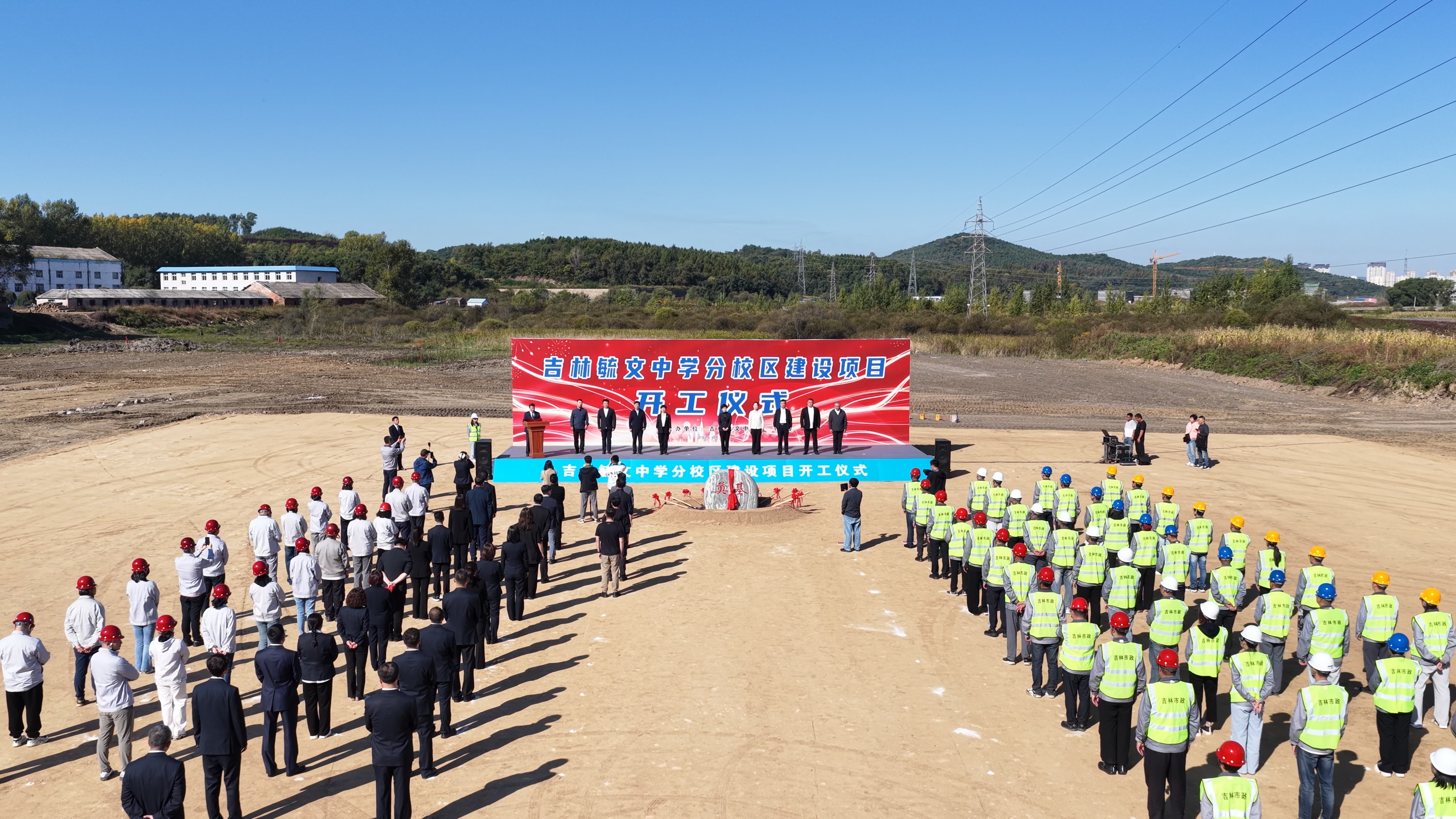 金秋九月,硕果飘香。2025年9月26日上午9时,吉林毓文中学分校区建设项目开工仪式在丰满区工业园三号路项目现场隆重举行。市教育局、丰满区政府、吉林毓文中学、监理单位领导及项目联合体成员单位代表齐聚一堂,共同见证这一关乎吉林市教育发展的重要时刻。