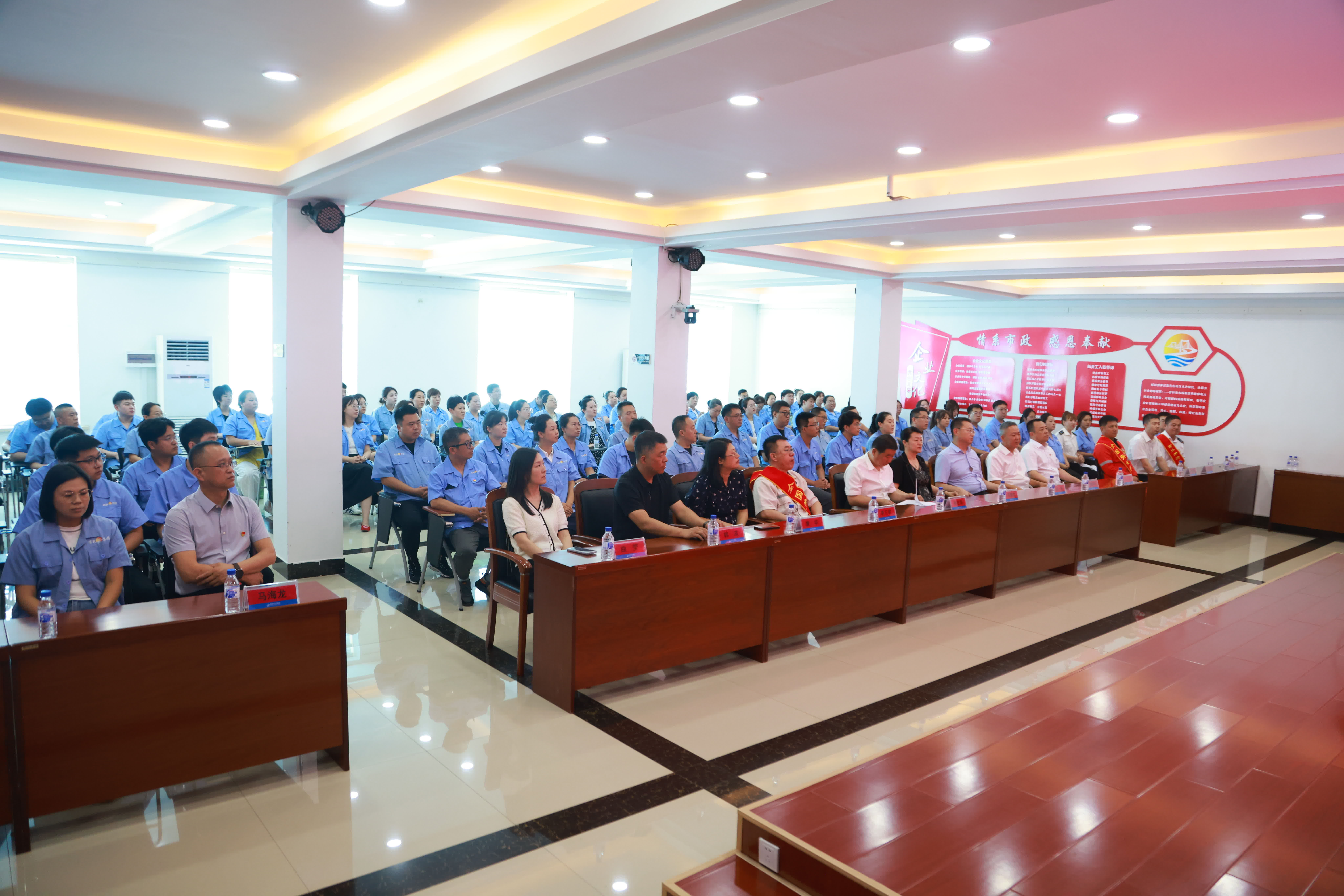 吉林省总工会党组成员、副主席孙在旗,吉林市人大常委会副主任、市总工会党组书记、主席范雅杰,吉林市总工会党组副书记、副主席崔湛,吉林省建设建材工会主席康华、副主席韩波,吉林市政集团董事长窦哲华,党委副书记、工会主席代为出席活动,党群工作部经理周明晶主持活动,市政集团百余名员工参加了活动。