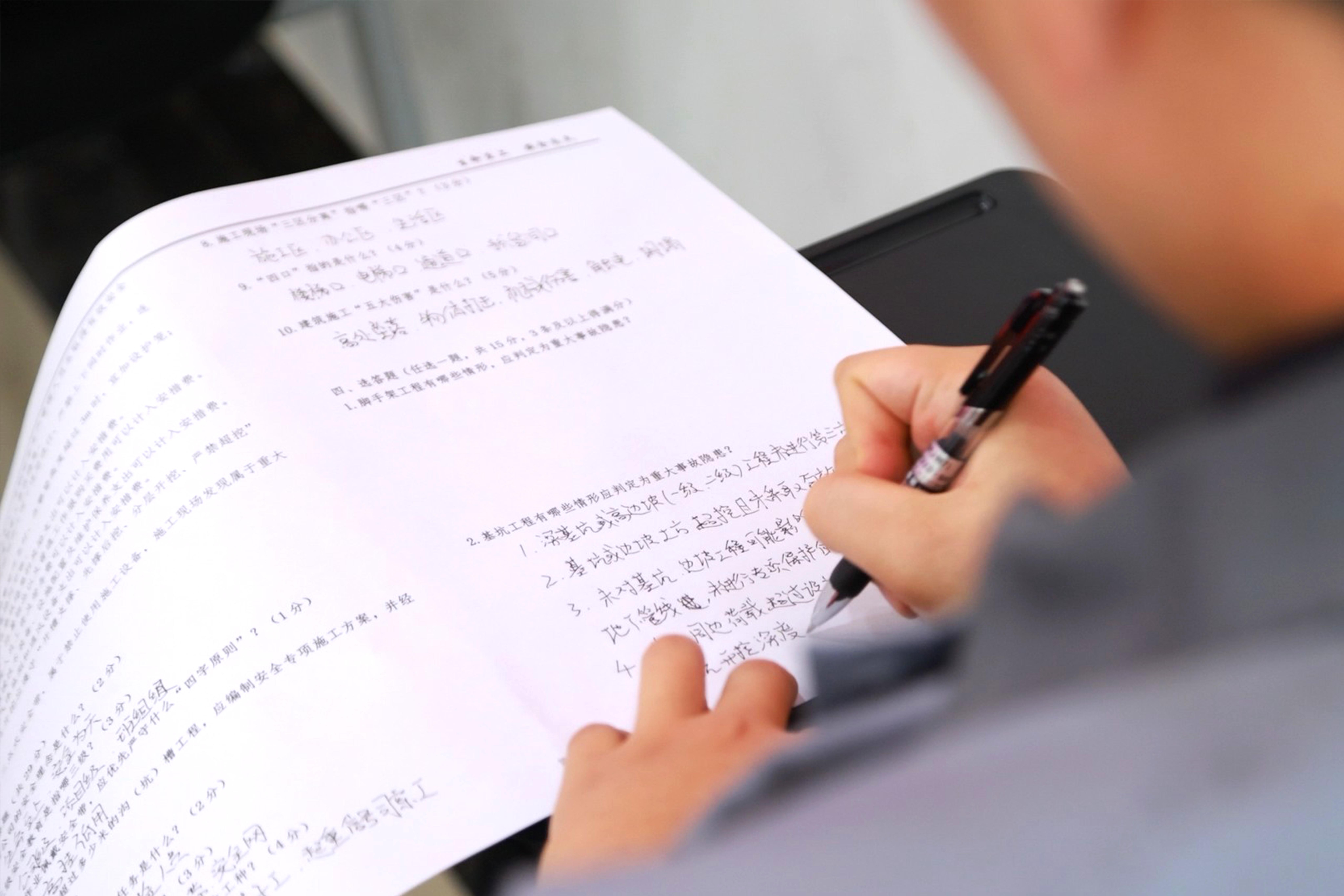 赛场上,选手们精神饱满、沉着应战。理论作答环节,大家凝神思考、认真书写,充分展现扎实的安全知识功底;隐患辨识环节,凭借丰富的实操经验细致排查,精准锁定各类潜在风险;实操演练环节,选手们动作干脆利落,从安全带的外观检查、部件确认,到正确穿戴、卡扣紧固,每一个步骤都严格遵循安全操作规范,既展现了过硬的实操技能,也彰显了对安全细节的极致追求,充分体现了集团公司安管人员良好的职业素养和精神风貌。