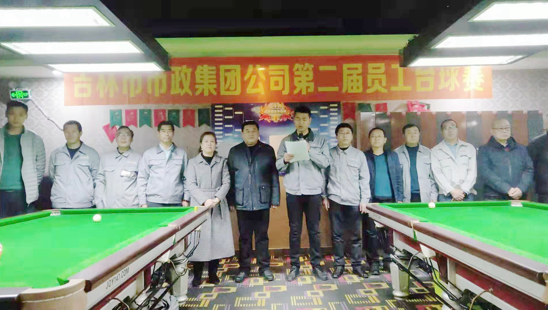 2019年3月14日,吉林市市政建设集团第二届员工台球赛在头等舱乔氏桌球俱乐部拉开序幕。集团公司副总经理苏润江、党委副书记戢伟宏、赞助单位桥梁分公司党支部书记张忠成以及来自集团各单位11支代表队的60余名选手参加了开幕仪式。