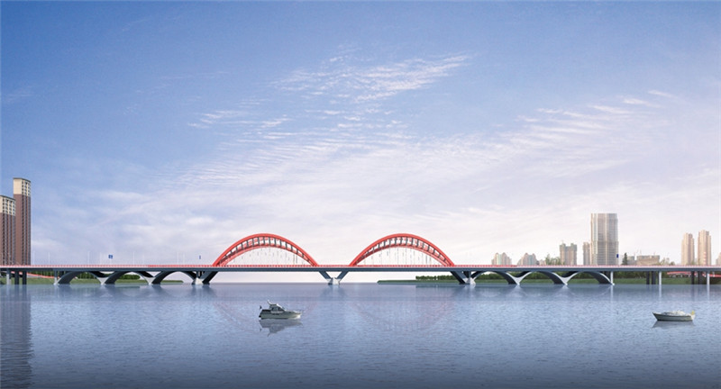 红旗大桥是主城区连接南部新城一条新的重要通道,对优化城市交通、促进南部新城开发建设意义重大。红旗大桥建设项目位于江城大桥上游1.2公里处,起点文山路,终点新城大路。大桥主桥总长1600.64米,其中北岸引桥长432.82米、主桥长410米,南岸引桥长757.82米。北岸立交设置8幅匝道桥和2处旋转坡道桥,南岸在松滨路与松江南路之间设置一对上下桥匝道和一对旋转坡道桥。该项目还包含雨污水管线、桥下铺装、绿化、交通标志线、照明、监控等配套工程。项目总投资约8.45亿元,于9月1日开工建设,计划2025年9月实现通行。