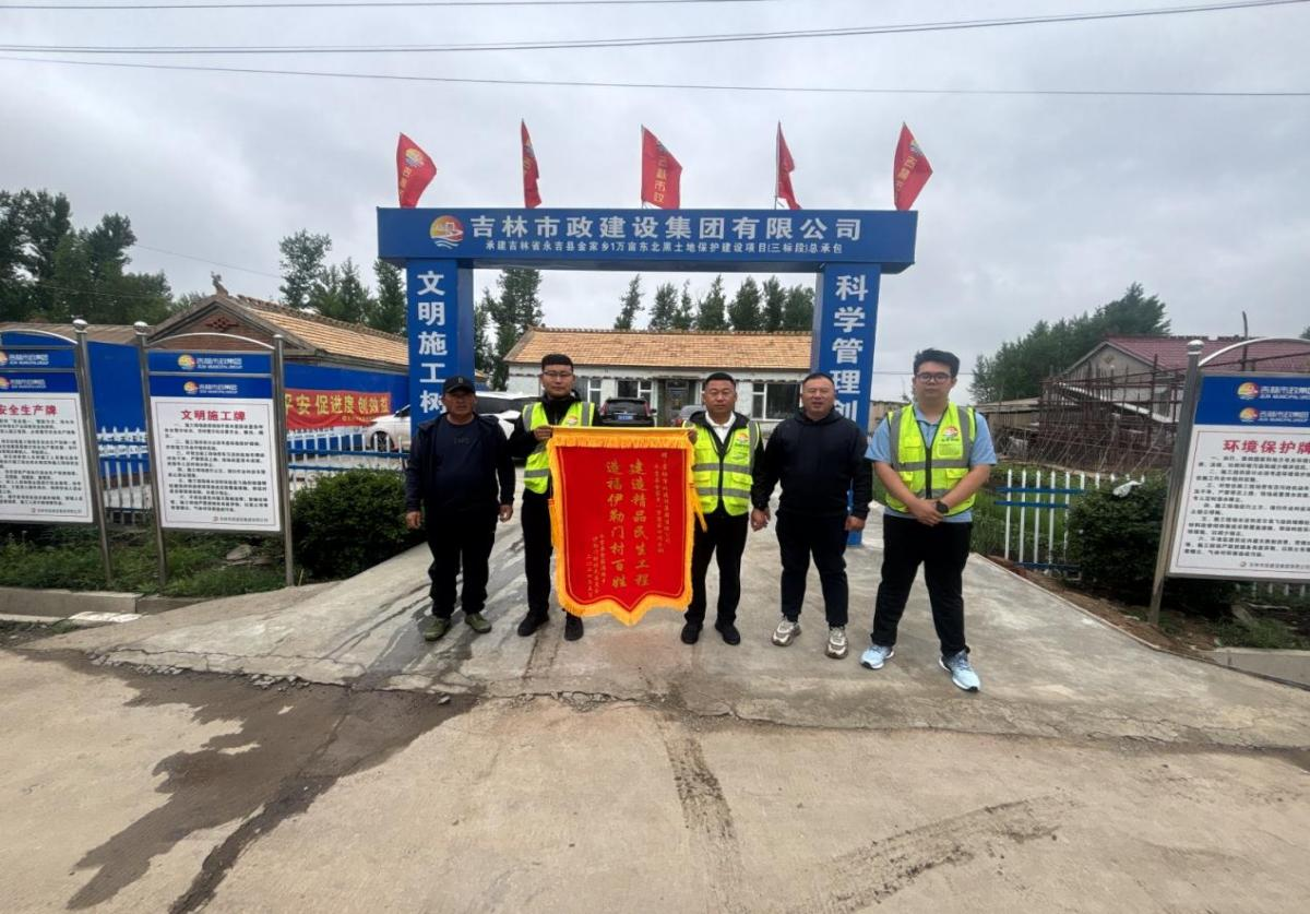 工期就是命令,项目部迎难而上,合理组织施工。在全体施工人员的辛勤努力下,工程施工进展顺利,多次获得当地农业农村局颁发的骏马奖,给集团公司树立了良好的企业形象,为进驻永吉县水利农田建设项目打下良好基础。施工中,伊勒门村委会沙书记代表村委会、村民亲自来到项目现场,慰问项目员工,赠送锦旗,给予项目部高度赞扬和肯定。
