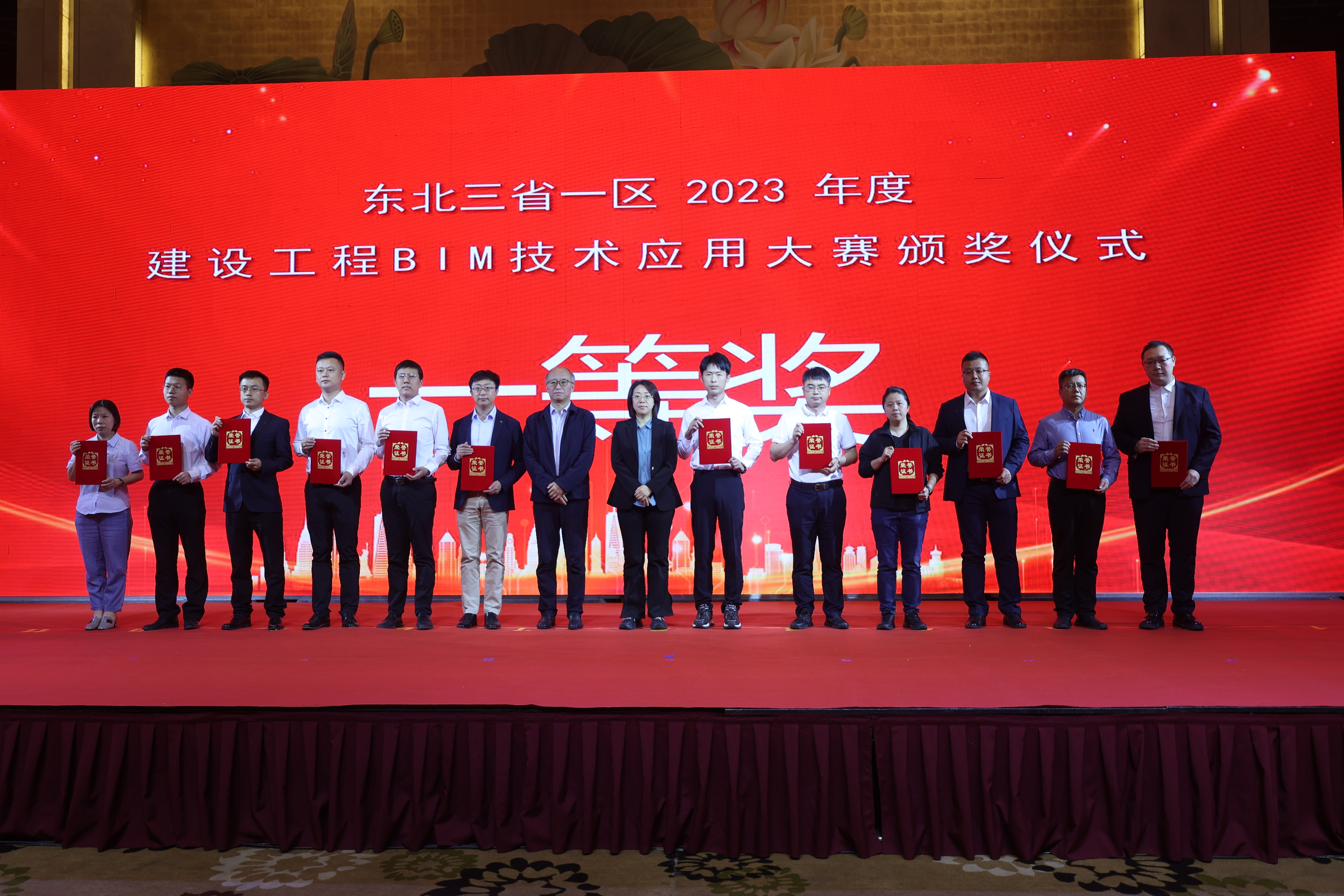 吉林市政集团的参赛作品吉林化工学院丰满校区工程项目BIM应用和吉林市红旗大桥工程项目BIM应用斩获奖项,分获大赛二等奖和三等奖,并派出代表登台领奖,合影留念。