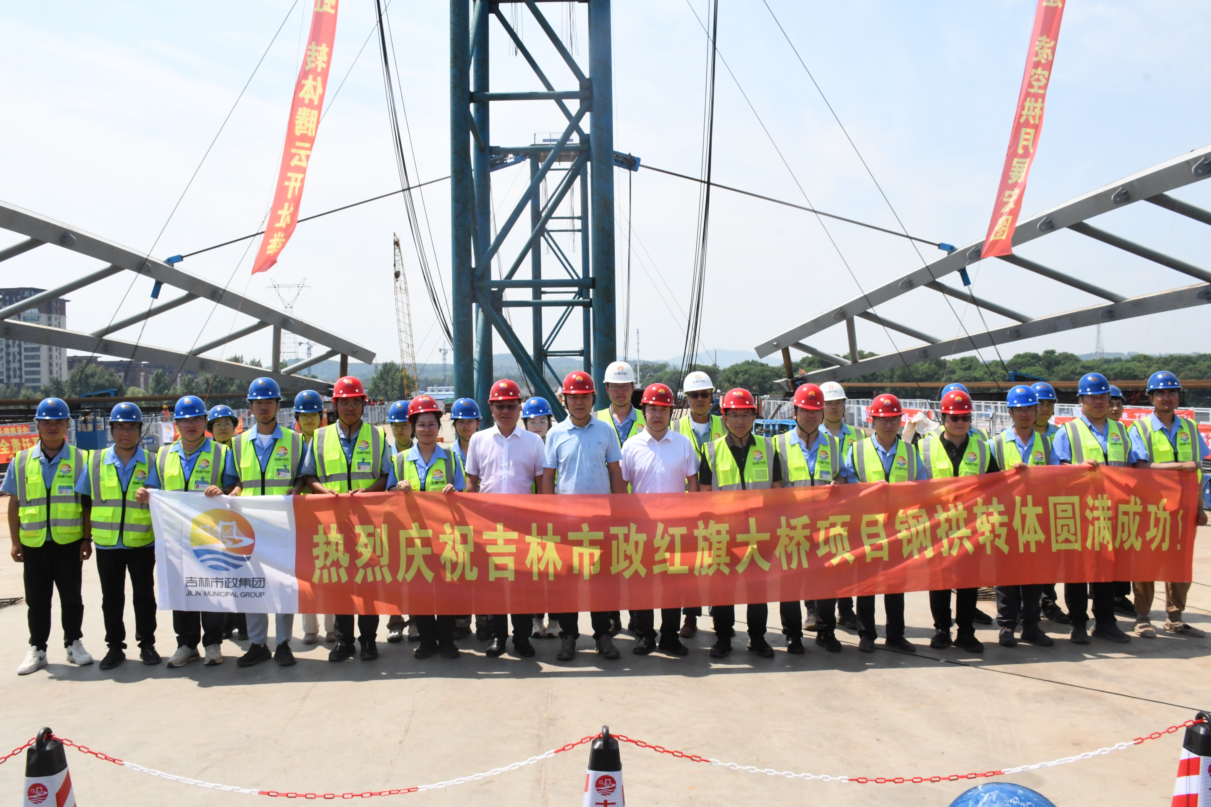 2025年6月25日,吉林市政集团红旗大桥项目迎来了具有里程碑意义的重要时刻——主桥钢拱肋侧向转体施工圆满成功,标志着红旗大桥建设正式迈入关键冲刺阶段,更为吉林市交通基础设施建设的宏伟蓝图增添了浓墨重彩的一笔。集团公司名誉董事长张成凯、董事长窦哲华、总经理闫海旭亲临现场,与施工人员共同见证这一激动人心的时刻。