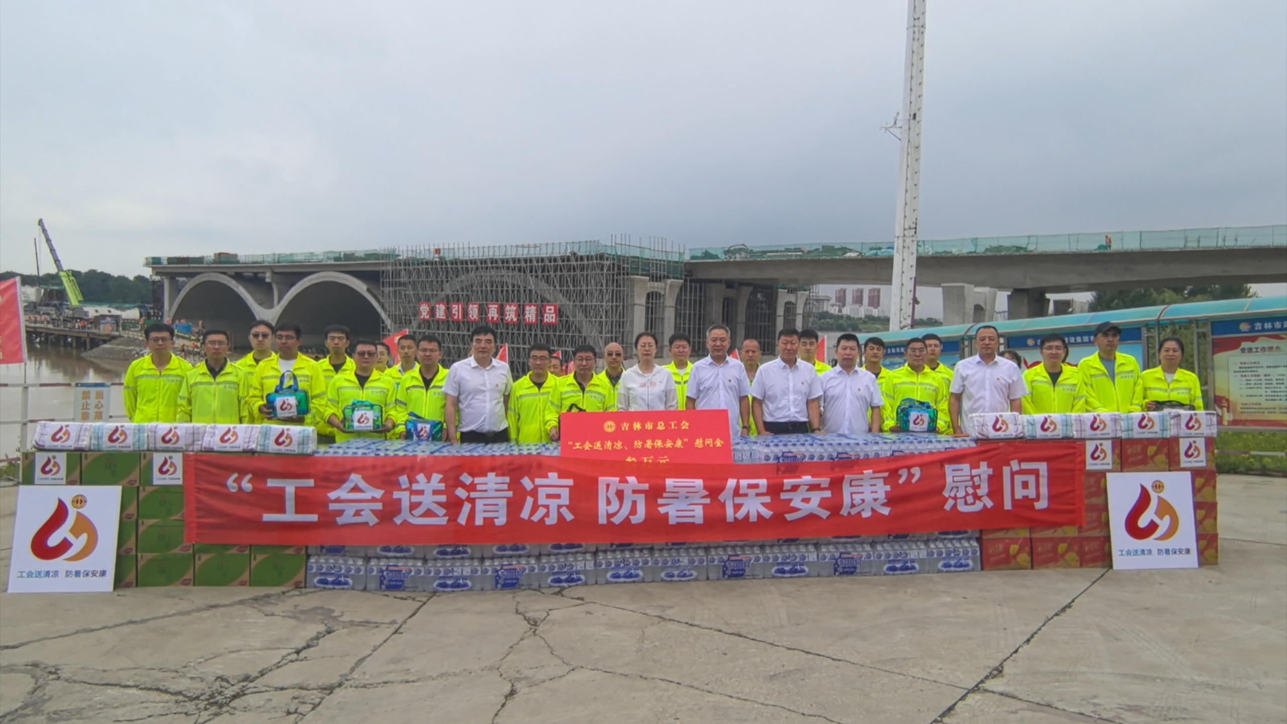 8月19日上午,吉林市总工会党组副书记、副主席葛春艳一行到吉林市政集团红旗大桥直属项目部开展“工会送清凉、防暑保安康”活动,向长期奋战在户外工作的一线职工送上夏日清凉和组织关怀。集团公司董事长窦哲华,总经理闫海旭,党委副书记、纪委书记、工会主席代为陪同慰问。